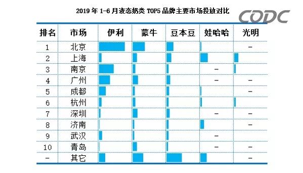 曾与伊利蒙牛并称乳界“三足鼎立”的光明乳业,市场份额进一步缩小,今年上半年其营业收入仅同比增长3.36%,净利润同比下滑。其广告投放也与伊利和蒙牛相距甚远,占比较少,排名第五位。
